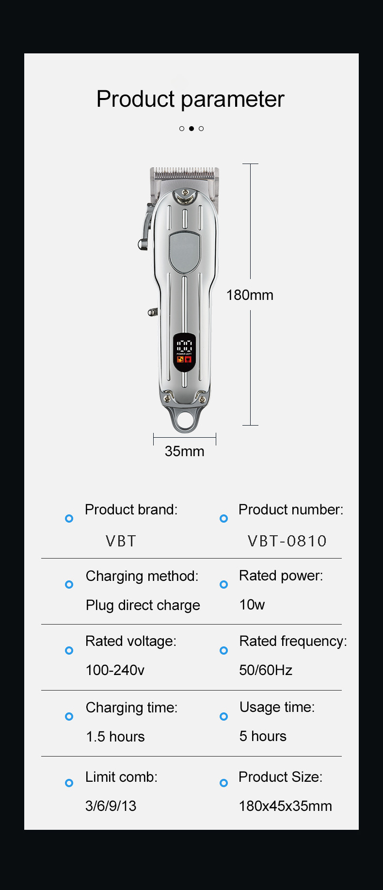 WL-GU11 High-Torque Salon Hair Clipper with Oil Storage System & 4-Speed Precision Adjustment